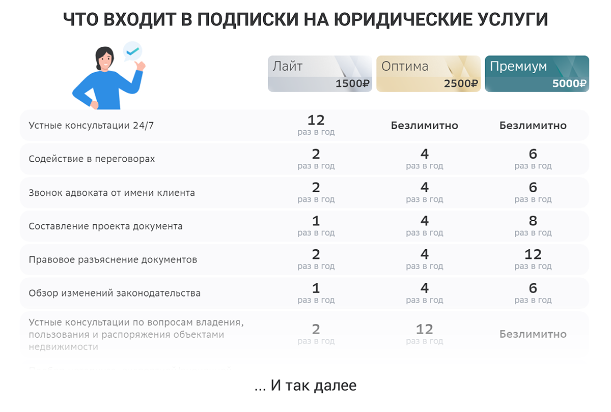 На скриншоте с сайта самого сервиса фигурируют цены в 1399 руб. за сопровождение сделки и столько же за консультацию по семейному праву.