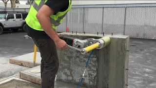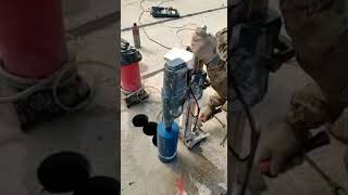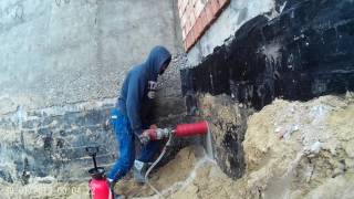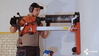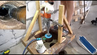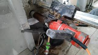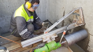 Как сделать круглое, сквозное отверстие в бетонной стене, с помощью установки алмазного бурения.