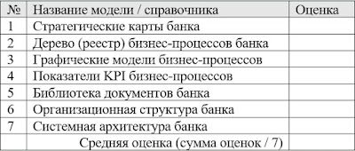 Табл. 1. Оценка уровня зрелости, детализации и проработки Бизнес-модели банка