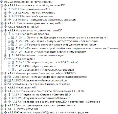 Рис. 3. Дерево бизнес-процессов банка (детализация)