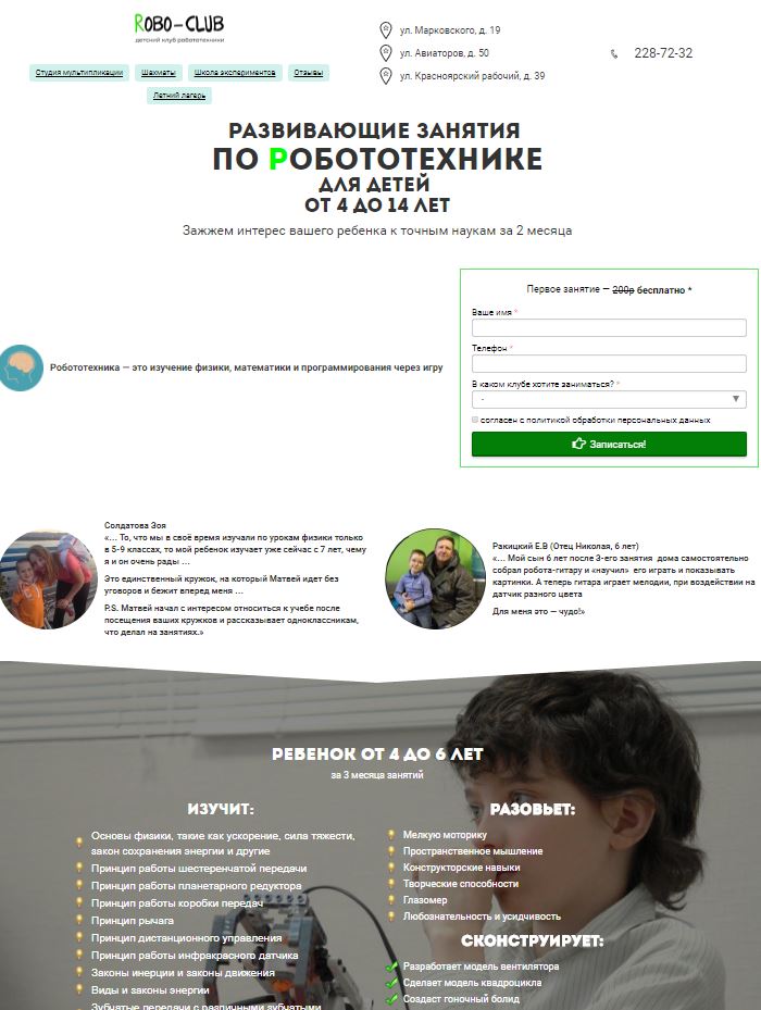 В каждом детском центре есть наиболее популярные курсы, которые приносят больше всего выручки. Под каждый такой курс решено сделать посадочные страницы и направлять клиентов туда персонализированными предложениями.
