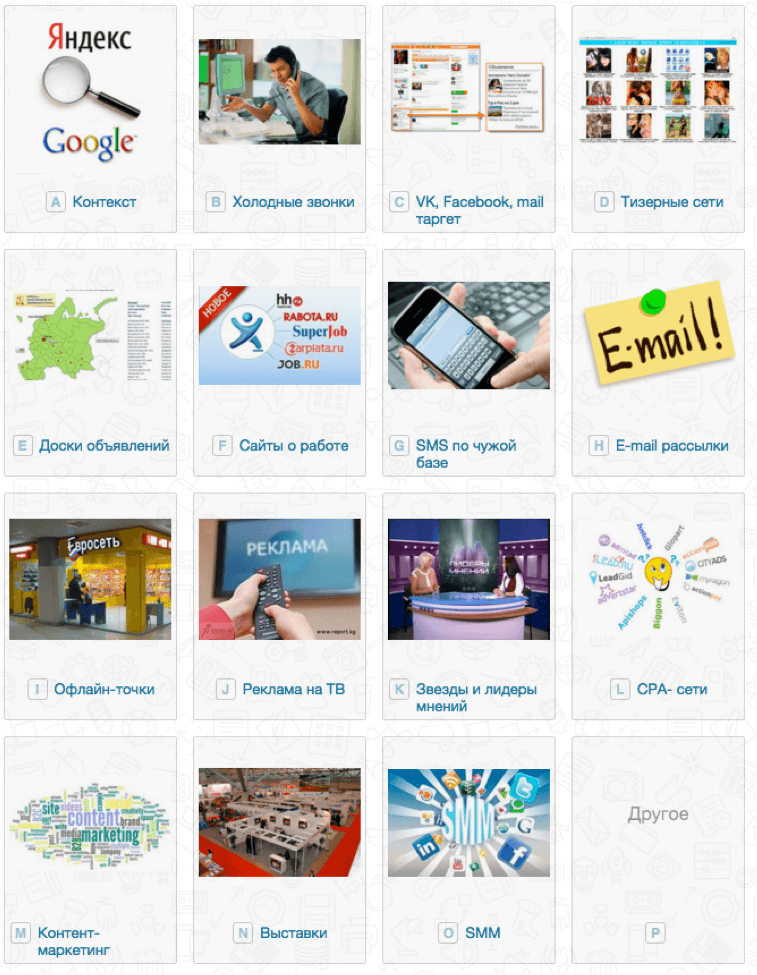 Кстати, если найдете 20-й тип канала привлечения клиентов (отличающийся от этих 19-и), напишите мне, я пока не нашел.