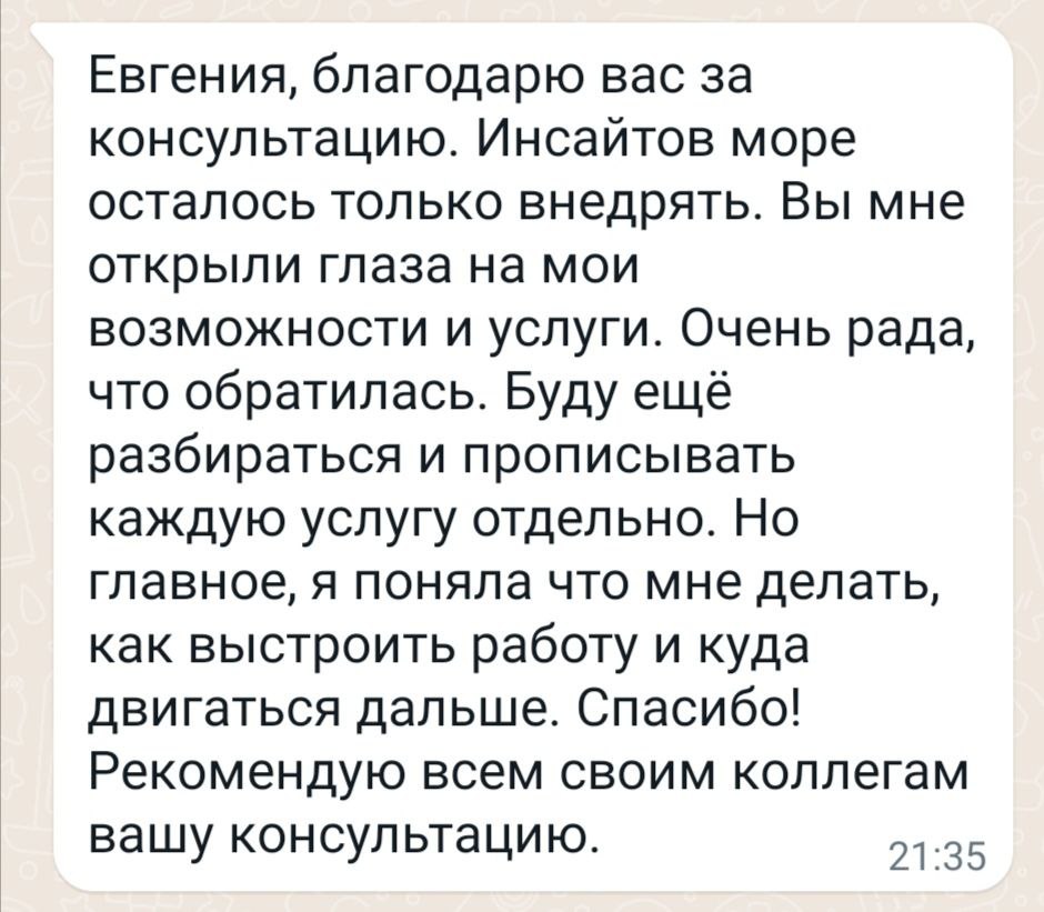 - По направлениям: развитие частной практики, как бизнеса, целевой аудитории, создание авторских услуг и увеличили свой доход в несколько раз.