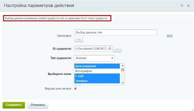 В общем, вариантов использования активити «Выбор данных crm» множество.