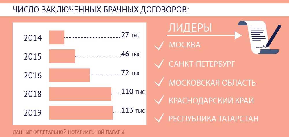 Стоимость. Стоимость подготовки брачного договора зависит от того, к кому вы обращаетесь. Если это нотариус, то расценки устанавливает нотариальная палата соответствующего субъекта РФ. Узнать стоимость можно на сайте нотариальной палаты вашего региона. Например, в Москве размер платы за подготовку брачного договора составляет 10 тысяч рублей, а в Санкт-Петербурге — от 6,5 до 10,4 тысяч рублей в зависимости от сложности.