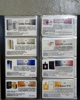 Под каждой визиткой расположен блоттер, который пропитан ароматом. Клиенту можно давать их тестировать и самые понравивщиеся ароматы наносим на тело клиента, чтобы послушать раскрытие при контакте с его кожей. Далее, завершение сделки.
