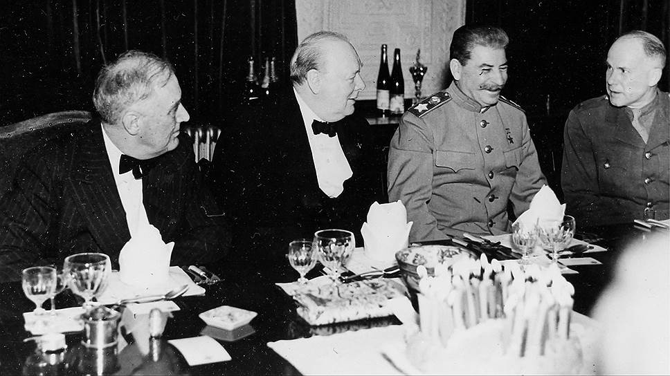 Подобные смутные сомнения терзали премьера и в 1943 году на встрече в Тегеране. Черчилль считал, что Сталин и Рузвельт объединились против него. На завершающем банкете 26 ноября Сталин, будучи в приподнятом настроении, в шутку предложил для ликвидации военного потенциала Германии расстрелять 55 тыс. офицеров и инженеров. Рузвельт в тон ему возразил, что тут нужен компромисс и достаточно будет 49 тыс. Черчилль промолчал.