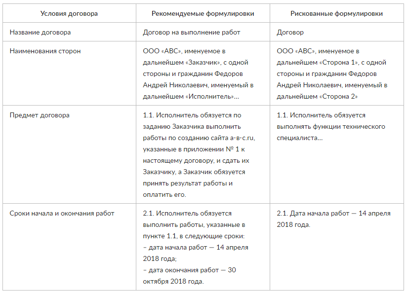 Напомним, какие формулировки в договоре ГПХ считаются рискованными:
