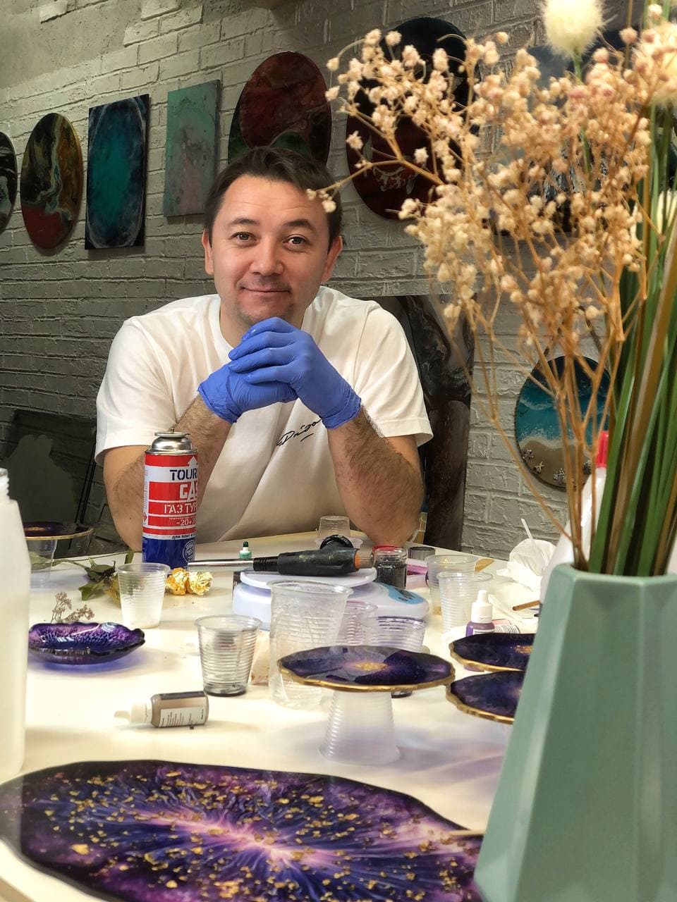 Привет, дорогой гость! Я — Андрей, и я занимаюсь эпоксидной смолой более 5 лет. За это время я открыл свою студию-мастерскую в Санкт-Петербурге, создал онлайн-магазин, а так же разработал свой онлайн-курс по обучению. За время работы я залил более 1000 литров смолы, создал собственные эффекты, мне точно есть, что вам показать