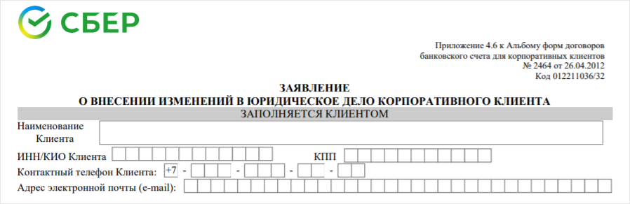 В целях безопасности изменить номер телефона вы можете только в офисе банка. Для этого скачайте заявление о внесении изменений в юридическое дело корпоративного клиента на сайте банка. На первой странице заявления укажите информацию о клиенте.