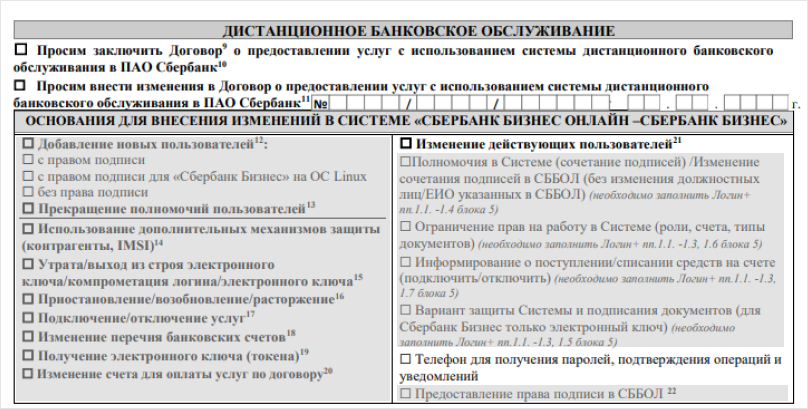 Выберите тему обращения об изменении в договоре и заполните информацию в разделе Дистанционное банковское обслуживание.