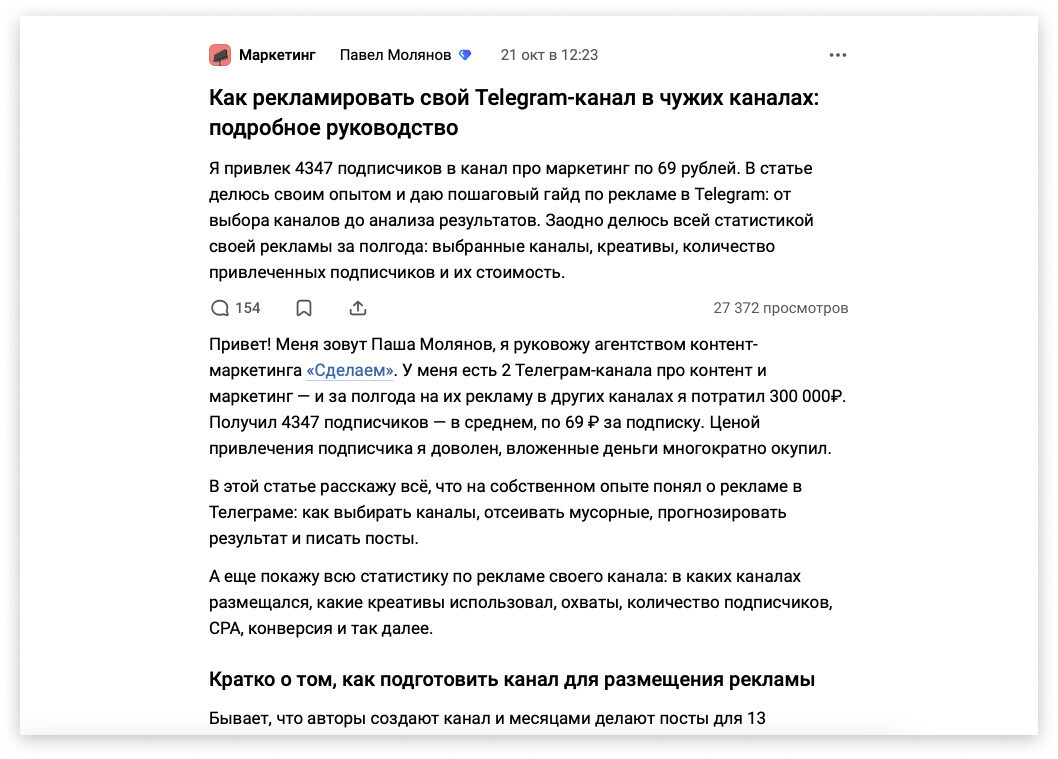Например, в статье «Как рекламировать свой Telegram-канал в чужих каналах: подробное руководство» я ни разу не написал, что у нас можно заказать подобную услугу. Более того, мы ее даже не предоставляем =)