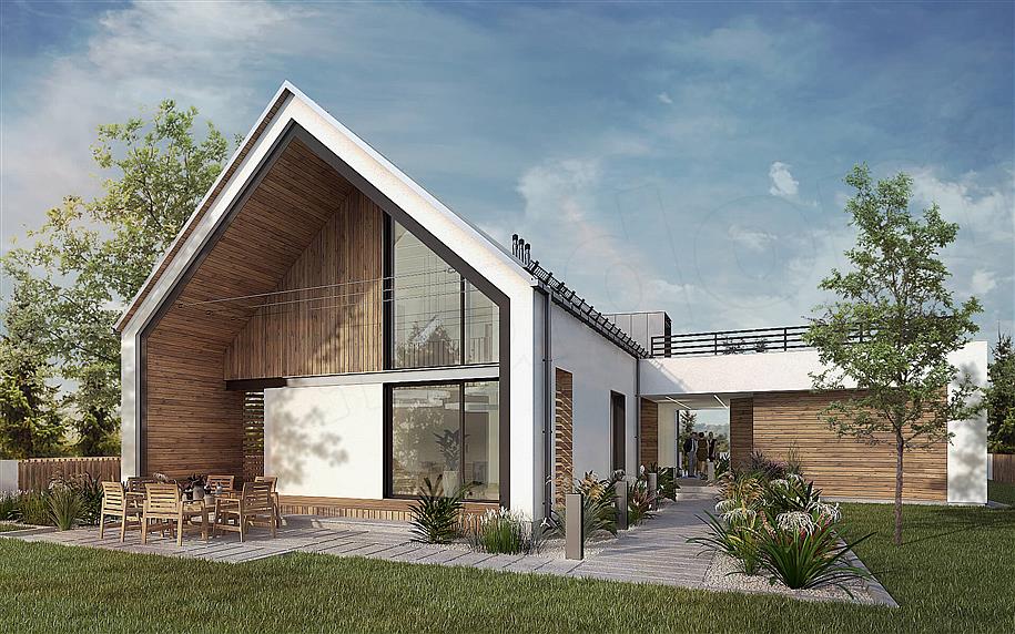 Всегда модный одноэтажный с мансардой и вторым светом или двухэтажный каркасный дом в стиле Barnhaus площадью от 30 кв.м и выше.