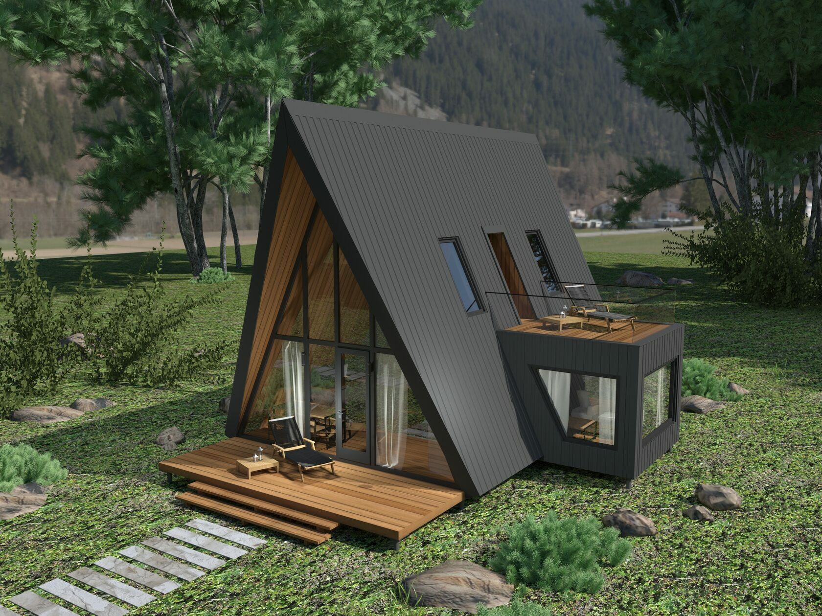 Проекты афреймов с боковым модулем, террасой, верандой, горячим чаном — по индивидуальному проекту.