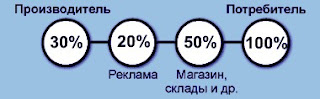Цена товара, который мы покупаем в магазине, составляет 100%. Но когда товар выходит с завода, его стоимость составляет всего 30%, а остальные 70% забирают: