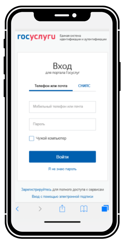 Еще один вариант регистрации, для которого не понадобится паспорт и фотография. Регистрация возможна с любого устройства, даже если на нем не работает камера. Нужен номер мобильного телефона / почта или СНИЛС и пароль для доступа к личному кабинету портала государственных услуг.
