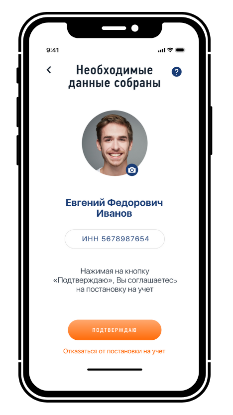 - Делается фотография на камеру телефона, с которого осуществляется регистрация.