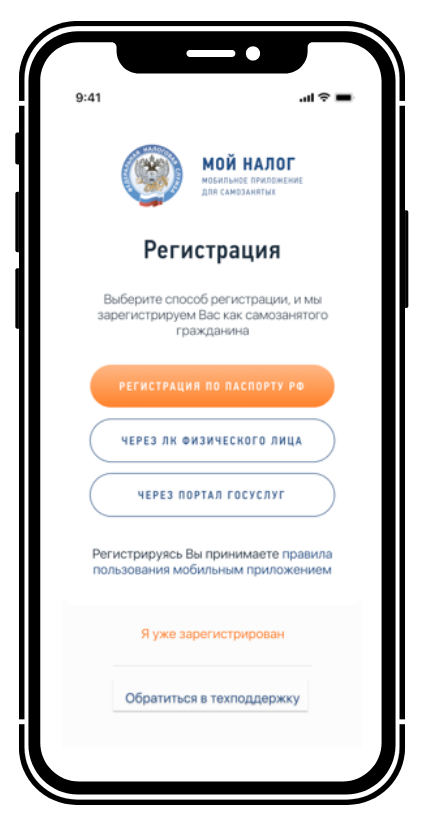 Регистрация в приложении «Мой налог»