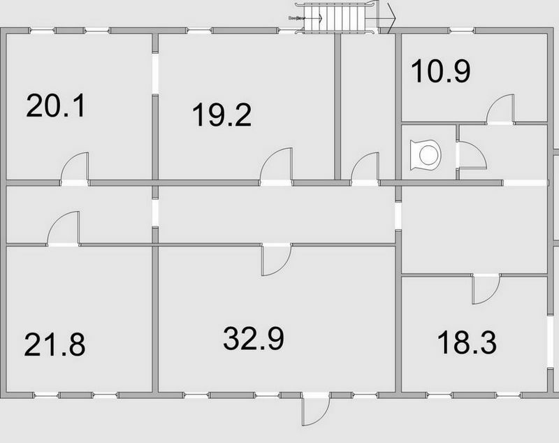 Пример кабинетной планировки. Большой холл 32.9м, 5 кабинетов.