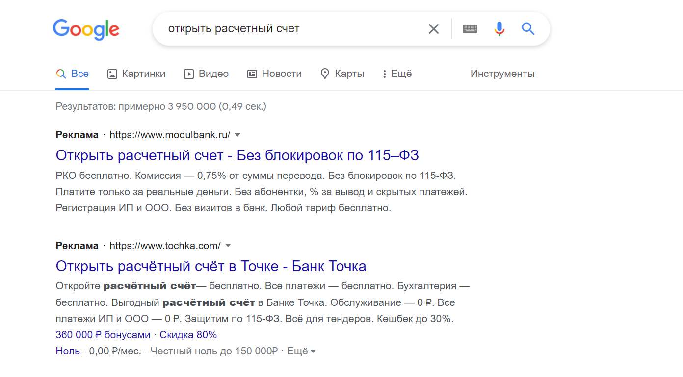 Проверенная временем воронка. Пользователю нужна банковская услуга, он ищет ее в поисковике, в топе видит ваше предложение и переходит на сайт. Еще пара касаний и у вас новый клиент.
