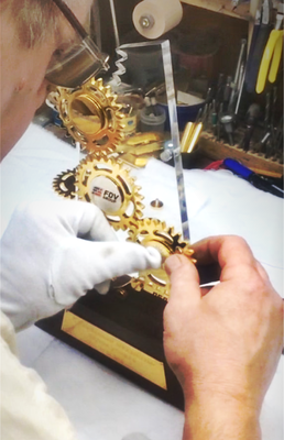 У нас собственное производство. Самые тонкие операции выполняем вручную: бережно полируем, покрываем никелем и золотом 999°, инкрустируем камнями, собираем по деталям в готовый подарок. В каждом изделии – душа мастера.