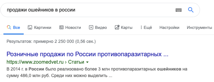 И тут нас ждет некоторое разочарование. Дело в том, что статистика есть только по «антипаразитарным» ошейникам (против клещей, блох и т.д.). и только за 2014 год.