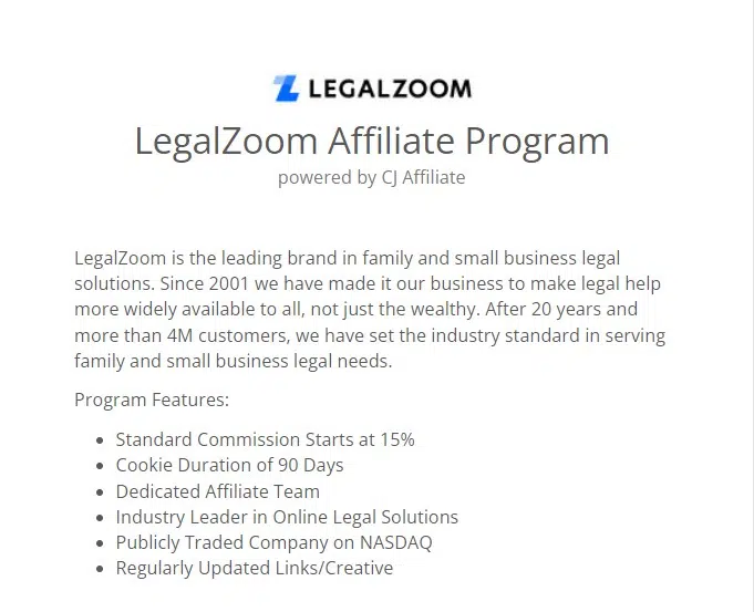 Партнерская программа Legal Zoom управляется Pepperjam. После подачи заявки партнеры должны ждать от пяти до семи дней ответа об их принятии.