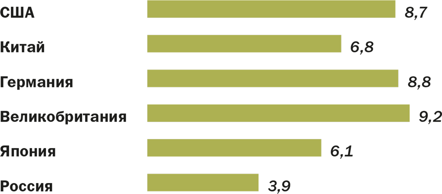Еще заметнее разрыв в чисто экономической эффективности: по сравнению с пятеркой стран —мировых лидеров, количество денег, приходящихся на одного российского ученого, ниже в два-три раза.