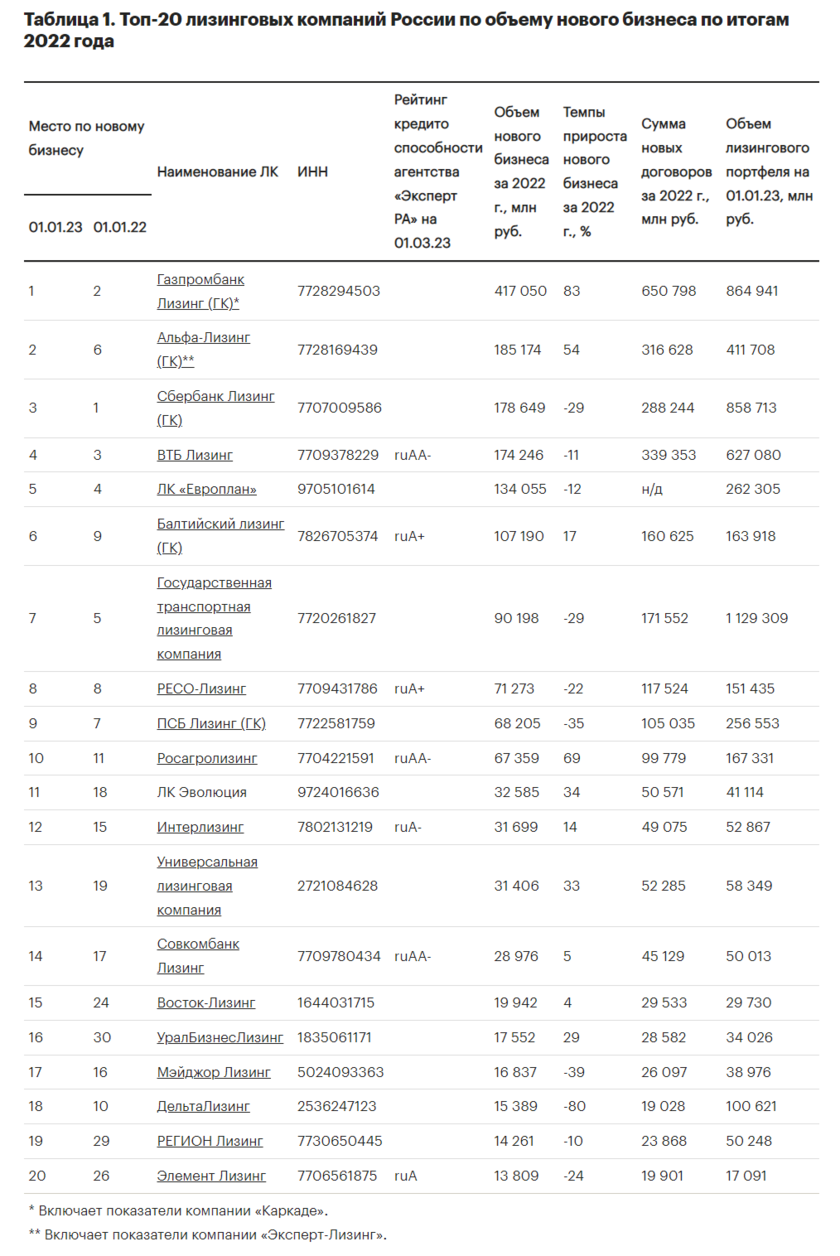 - ↑Рынок лизинга по итогам 2022 года: на пониженной передаче
