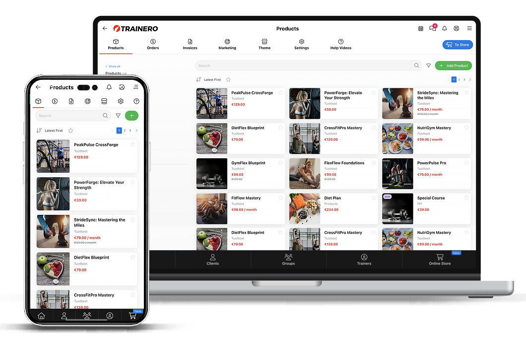 Управляйте своим бизнесом с помощью полностью интегрированной CRM, которая легко работает с другими частями Trainero. Управляйте клиентами, тренерами, товарами интернет-магазина, заказами и платежами.