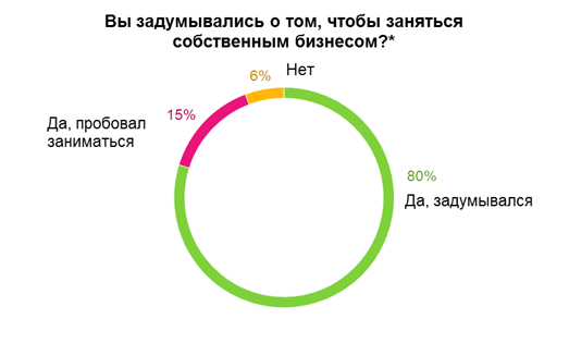 80% работников признались, что задумывались над тем, чтобы создать собственный бизнес, а 15% уже пробовали претворить эту идею в жизнь.