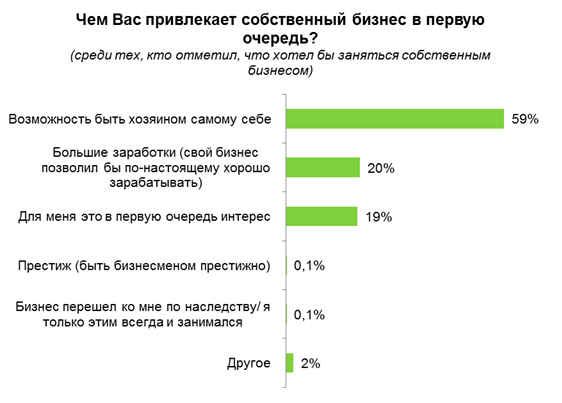 *Не престиж собственного бизнеса и даже не интерес к нему привлекает большинство работников. Основным мотивом является желание быть хозяином самому себе (59%).