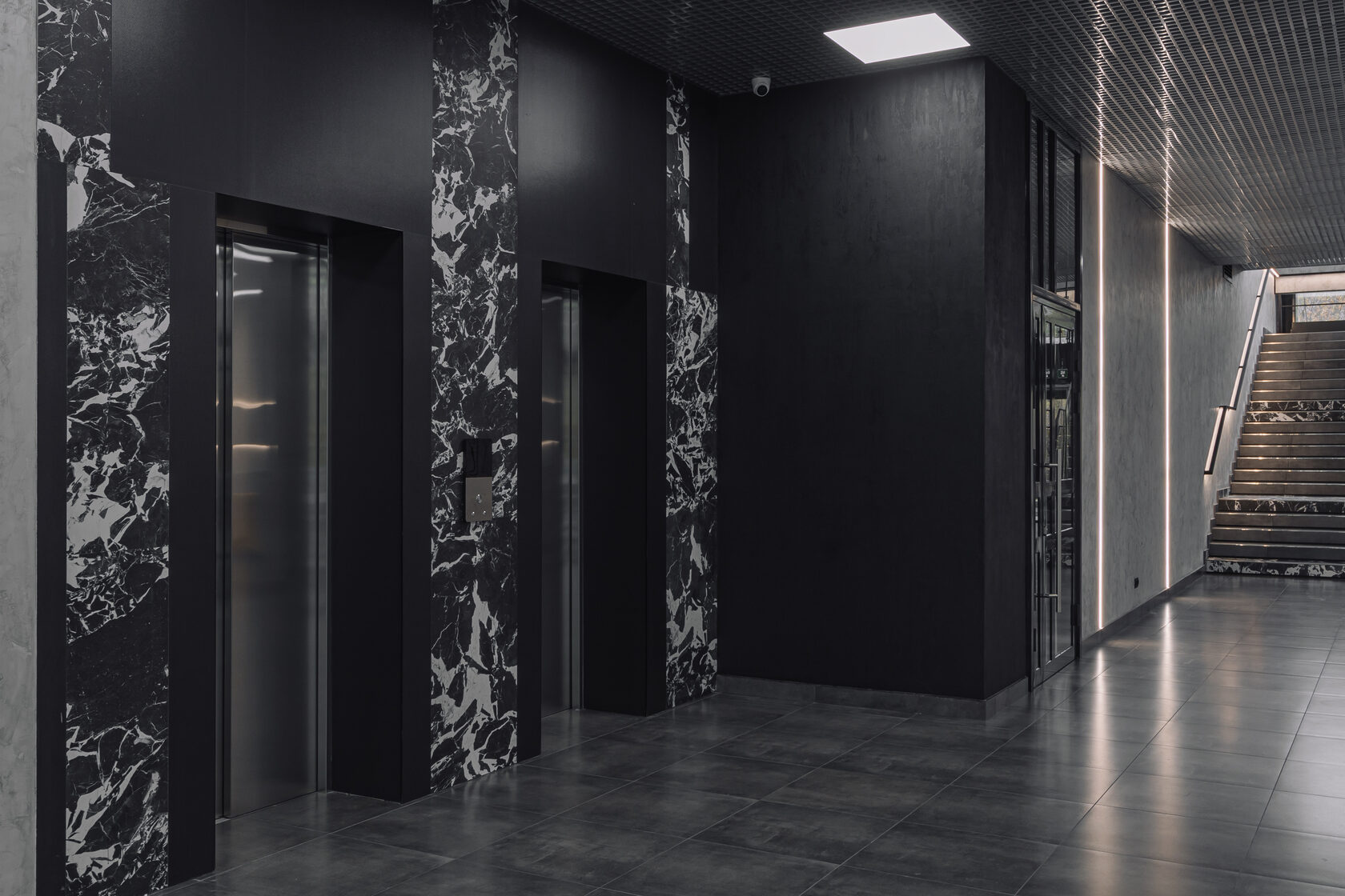 — Девять бесшумных скоростных лифтов, часть из которых – панорамные.