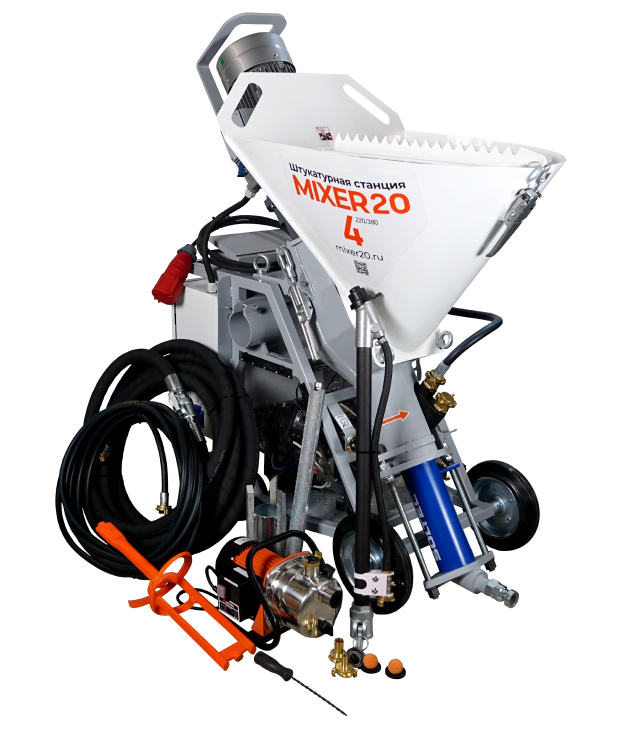 В результате чего повышается адгезия, а сам материал ложится тонким и очень ровным слоем. Итог закономерный – качественное, ровное и прочное покрытие без воздушных полостей и прочих дефектов.Важно. Для машинного способа применяются специальные сухие смеси на основе гипса или цемента. Они включают в себя пластификаторы и прочие добавки для улучшения адгезии и пластичности.Штукатурная станция всегда работает только на материалах заводского производства. Казалось бы, что стоимость «особых» смесей должна быть выше, но в реальности такая штукатурка стоит на 15-20% дешевле, а это уже большая экономия.Стоит учитывать, что для внутренних и наружных работ используются разные смеси на основе гипса и цемента:
