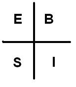 Квадрант разбит на 4 сектора: слева – «E» и «S», справа — «B» и «I» — источники доходов.